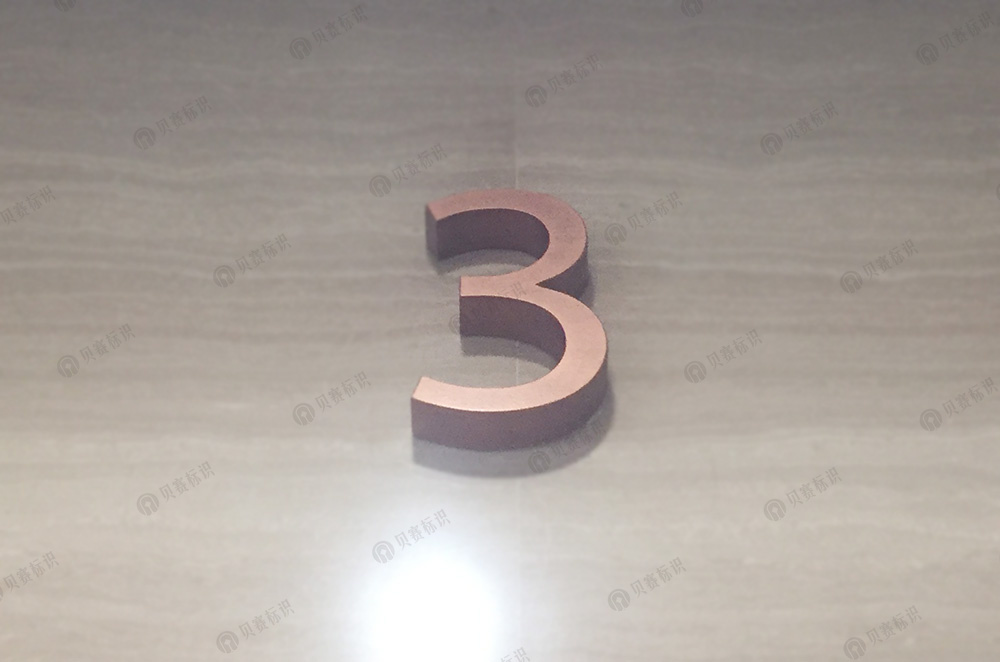 (酒店文字標(biāo)識實(shí)物拍攝圖,電鍍拉絲玫瑰金不銹鋼立體字)